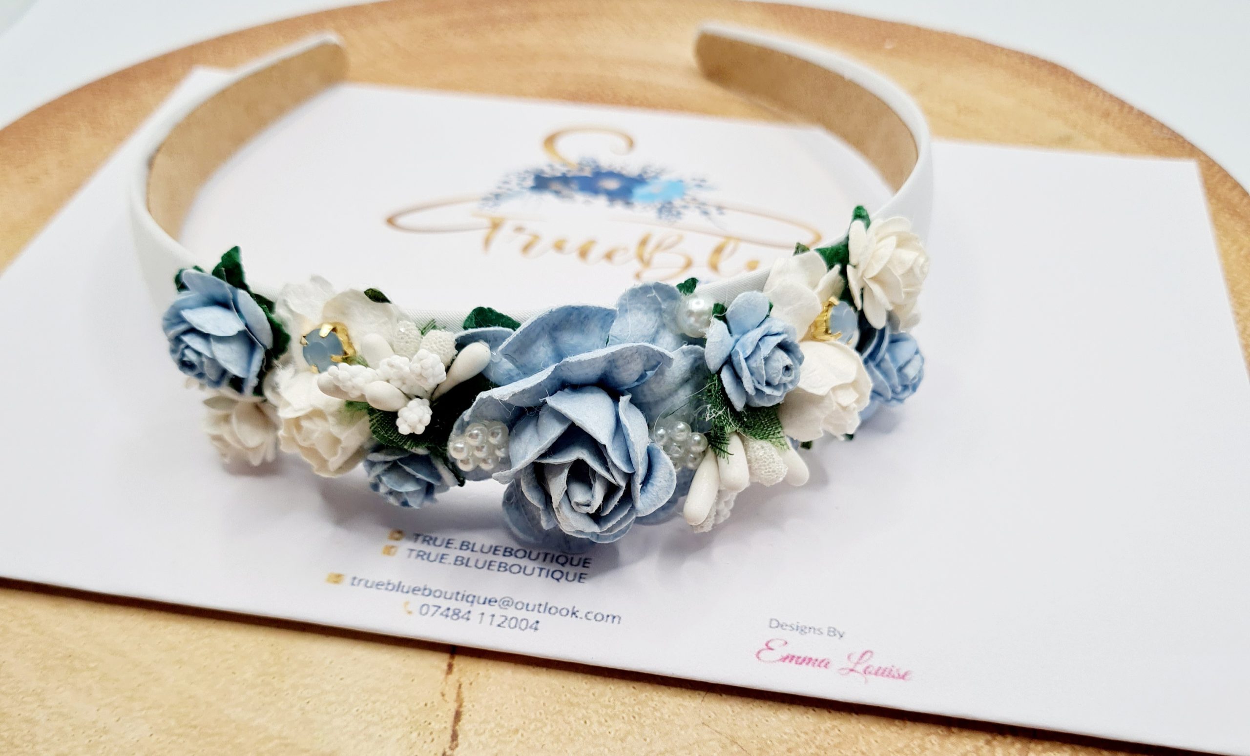 Azure baby blue tea rose flower headband quantity