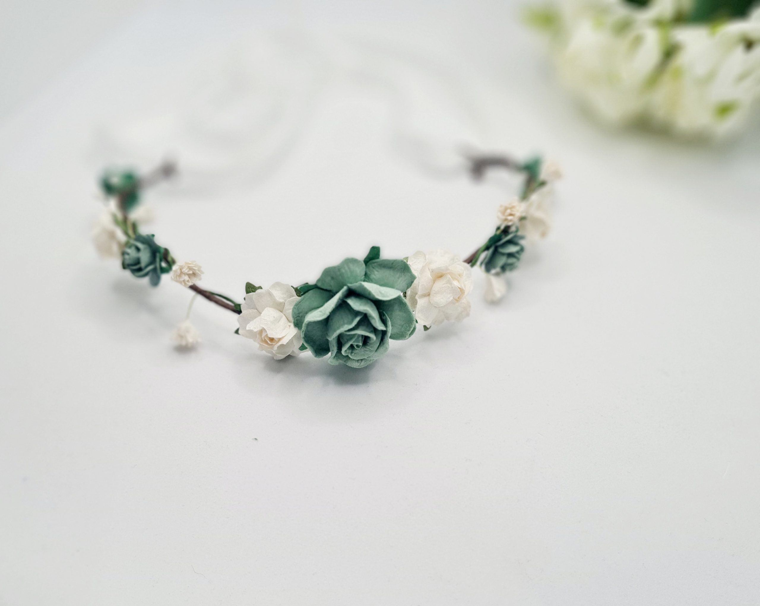 Esmeralda open rose sage and white flower crown