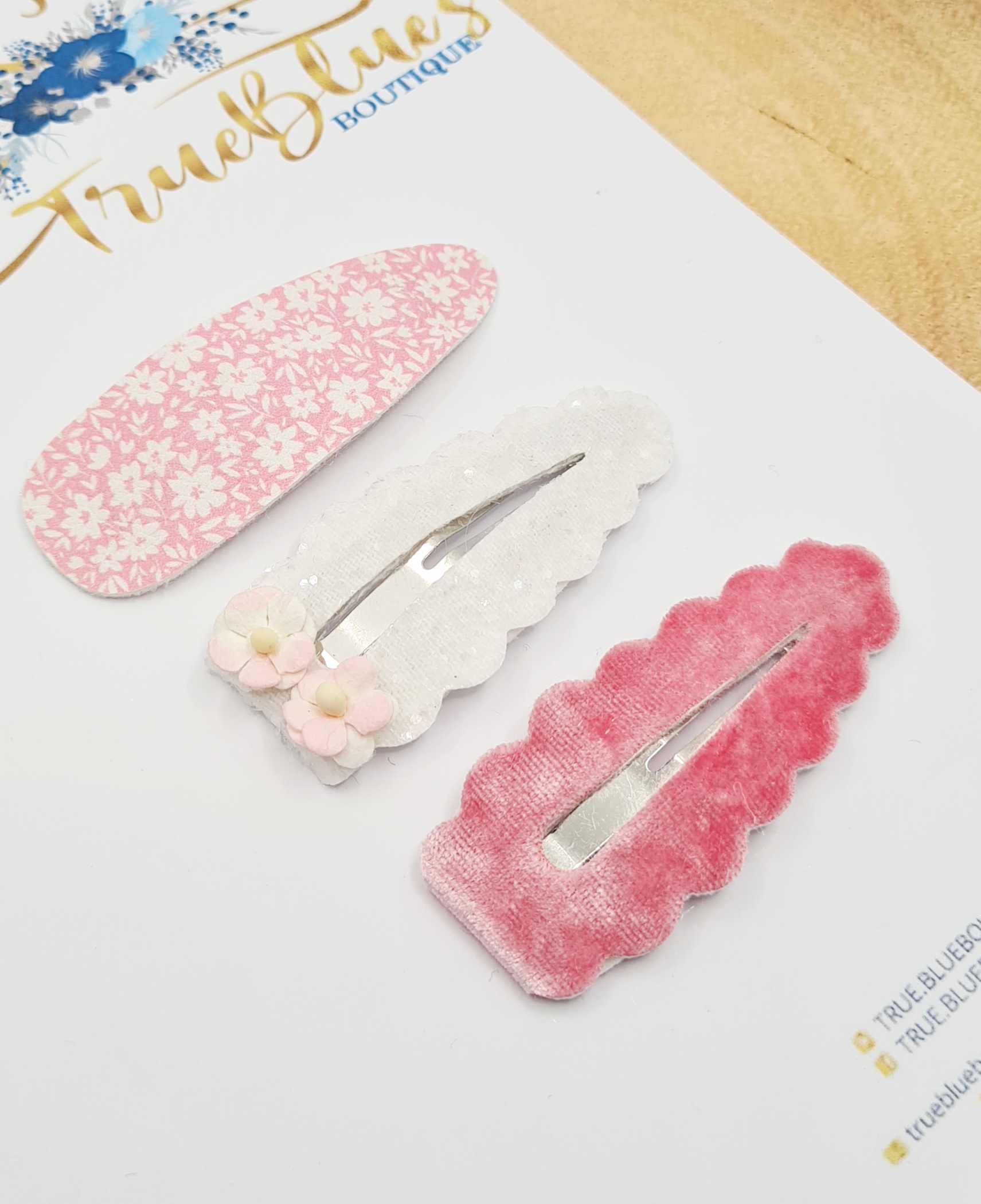 Floral pink set of 3 clips approx. 6cm