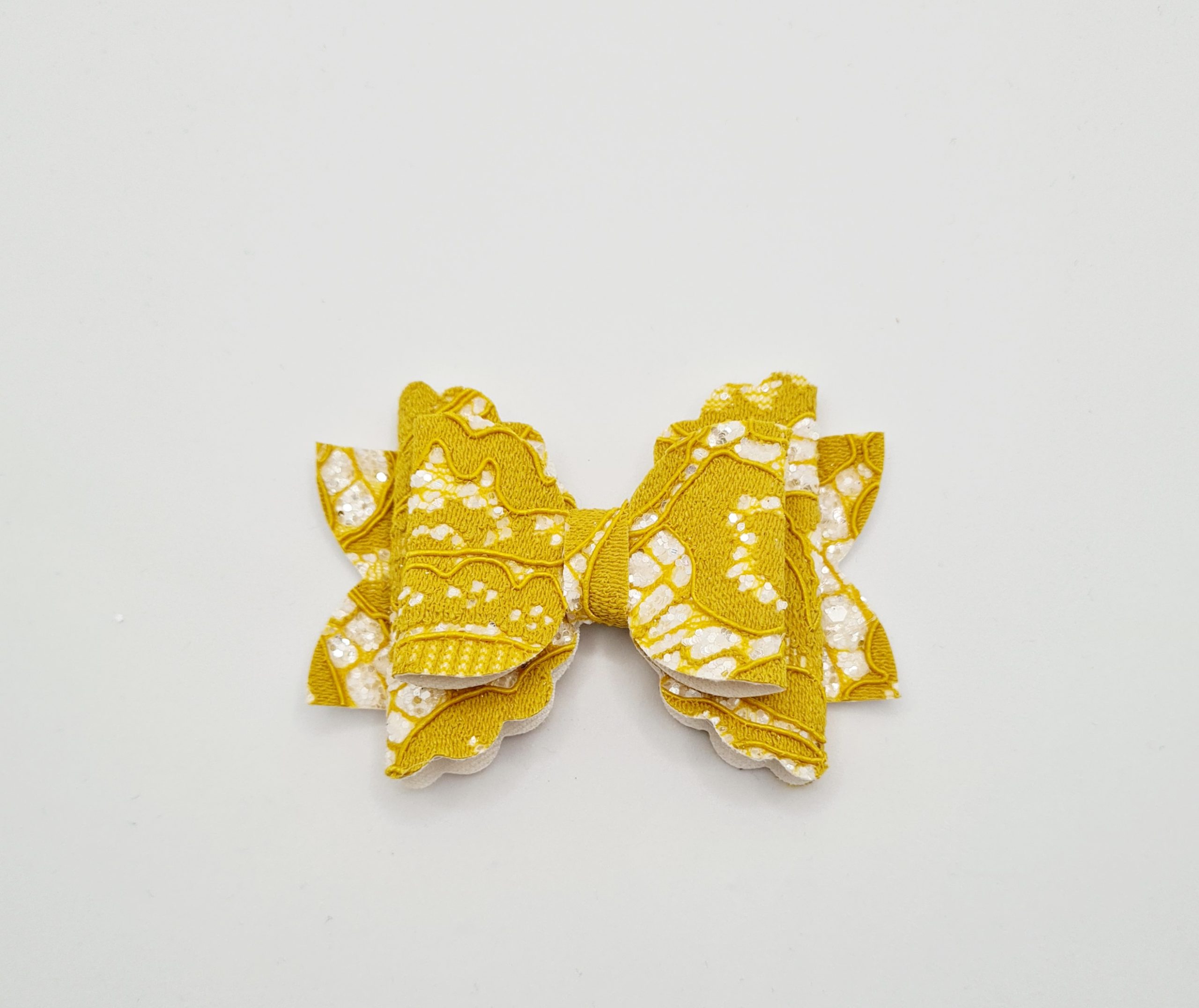 Mustard lace print 3.5 inch bow