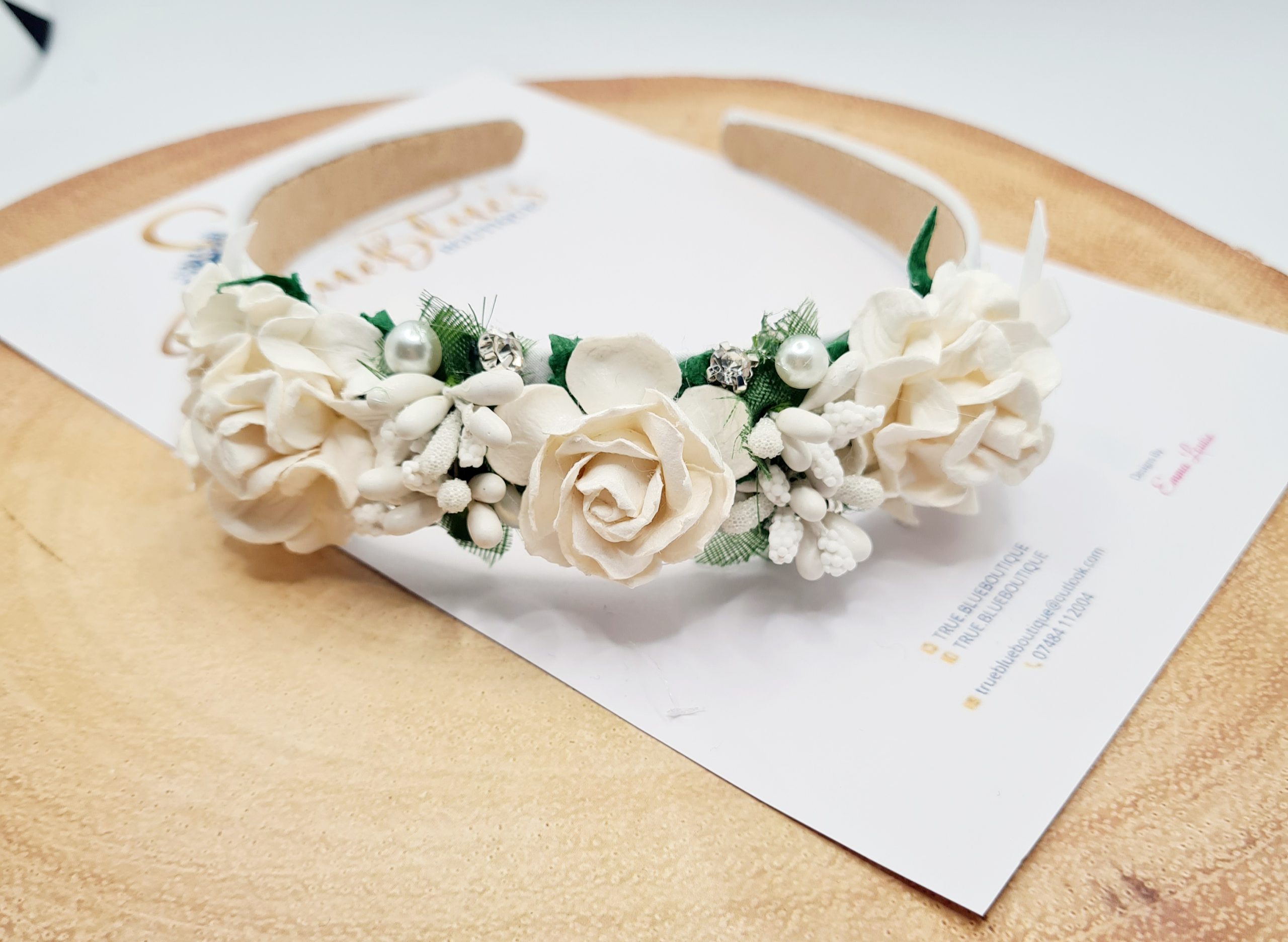 Snow drop cottage rose & pearl headband quantity